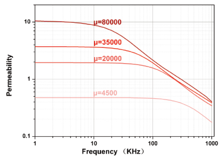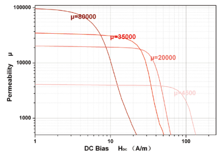 ● High Bs , high μ -- Easy to design , reduce core geometry effectively ● Good frequency flexibility -- Better controlling to the noise in different frequencies ● Low magnetostriction coefficient -- Low noise ● Excellent impedance character -- EMC can guarantee 10000 permeability when resist 80A/M under current bias
